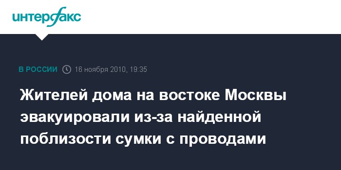 Москва. 16 ноября. INTERFAX.RU - На востоке Москвы эвакуированы жильцы дома из-за подозрительного предмета, обнаруженного около здания, сообщил "Интерфаксу" источник в правоохранительных органах во вторник.