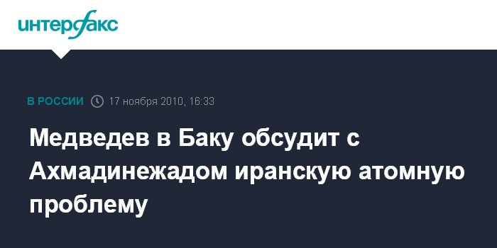 Медведев в Баку обсудит с Ахмадинежадом иранскую атомную проблему