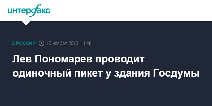 Москва. 18 ноября. INTERFAX.RU – Лидер движения "За права человека" Лев Пономарев в четверг проводит одиночный пикет у здания Государственной Думы РФ. Как сообщили Interfax.ru очевидцы, правозащитник стоит с плакатом "Деньги народу, а не олигархам".