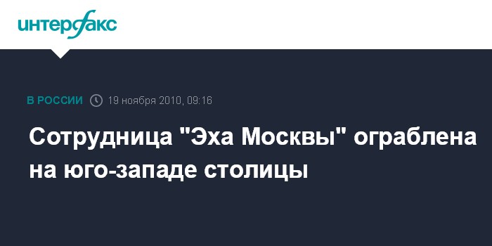 Москва. 19 ноября. INTERFAX.RU - Сотрудница информационного агентства "Эхо Москвы" стала жертвой грабителя на юго-западе столицы, сообщил "Интерфаксу" источник в правоохранительных органах в пятницу.