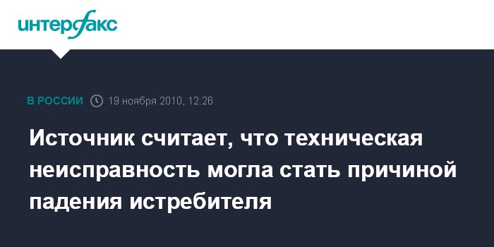 Источник считает, что техническая неисправность могла стать причиной падения истребителя