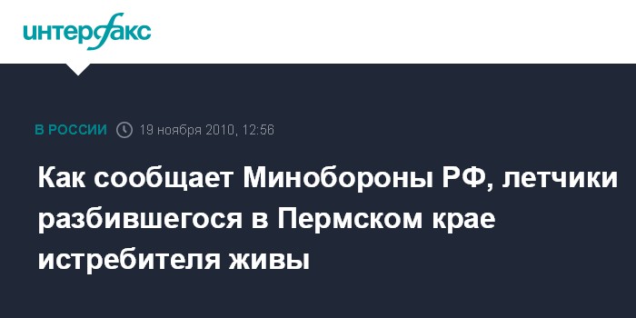 Как сообщает Минобороны РФ, летчики разбившегося в Пермском крае истребителя живы