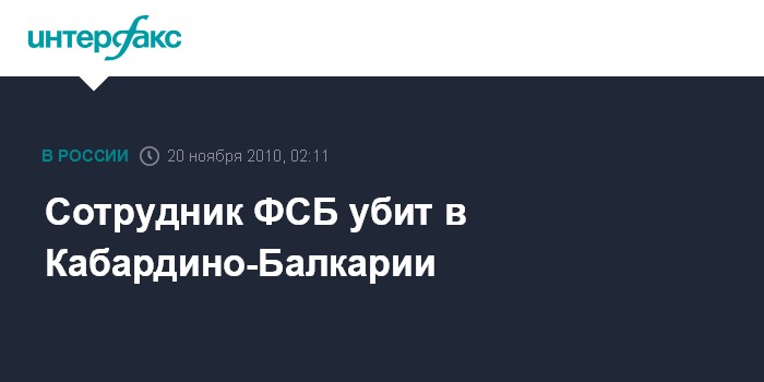 Нальчик. 20 ноября. ИНТЕРФАКС-ЮГ - Покушение на сотрудника районного отдела УФСБ совершено в Кабардино-Балкарии, сообщил агентству "Интерфакс-Юг" источник в правоохранительных органах республики.