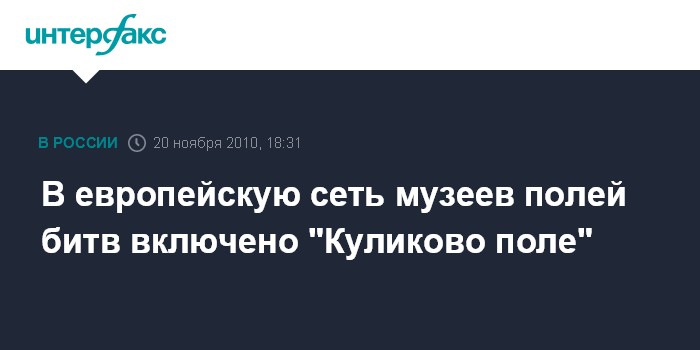 Тула. 20 ноября. INTERFAX.RU - Государственный музей-заповедник "Куликово поле" (Тульская область) включен в европейскую сеть музеев полей битв, сообщил "Интерфаксу" директор музея-заповедника Владимир Гриценко. По словам собеседника агентства, в рамках деятельности сети европейских музеев, посвященных военной истории, планируется реализация общих проектов, направленных на продвижение музеев в странах Европы в едином информационное поле.