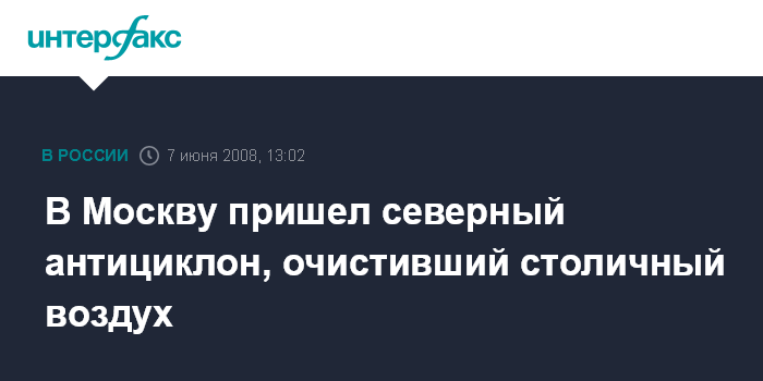 Москва. 7 июня. INTERFAX.RU - Московский воздух в выходные будет относительно чистым, сообщает Росгидромет. "7 и 8 июня Московский регион будет находиться под влиянием северного антициклона. Умеренный ветер будет способствовать рассеиванию загрязняющих примесей в приземном слое атмосферного воздуха. Уровень загрязнения воздуха сохранится пониженный", - говорится в сообщении Росгидромета.