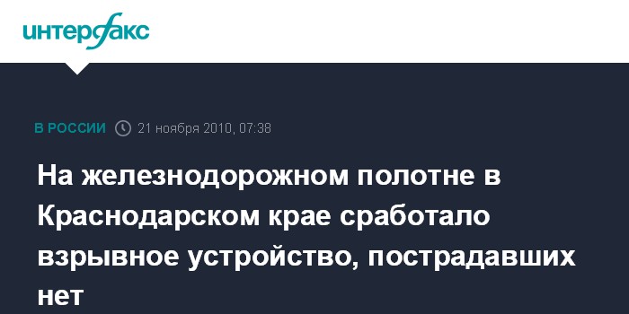 На железнодорожном полотне в Краснодарском крае сработало взрывное устройство, пострадавших нет