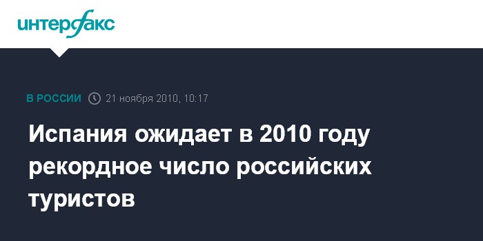 Москва. 21 ноября. INTERFAX.RU - Испанию в 2010 году посетит не менее 600 тыс. российских туристов, сообщил порталу "Интерфакс-Туризм" советник по туризму посольства Испании в России Феликс де Пас Гарсиа-Дис. По его словам, несмотря на то, что доля российских туристов составляет примерно 1,2% от общего иностранного турпотока в Испанию, россияне демонстрируют один из самых высоких темпов роста по прибытиям.