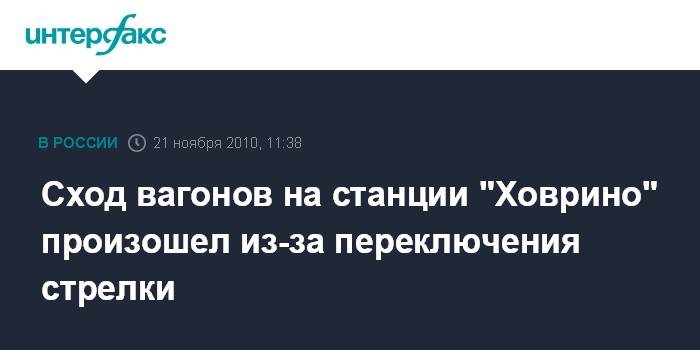 Сход вагонов на станции "Ховрино" произошел из-за переключения стрелки