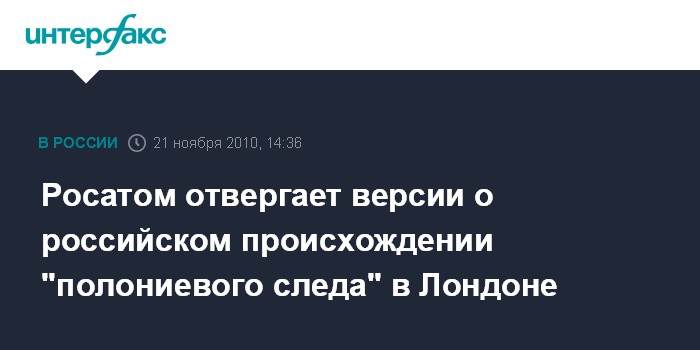 Со своей стороны представитель "Росатома" Сказал Новиков заявил "Интерфаксу", что "опубликованные бумаги вызывают большие сомнения, так как полоний в России в таких количествах давно не производится".