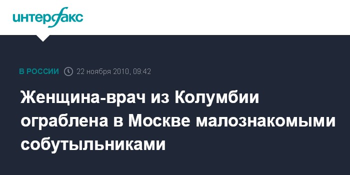 Женщина-врач из Колумбии ограблена в Москве малознакомыми собутыльниками