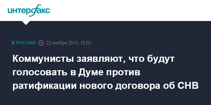 Москва. 22 ноября. INTERFAX.RU - Фракция КПРФ в Госдуме намерена голосовать категорически против ратификации нового Договора об ограничении стратегических наступательных вооружений (СНВ).