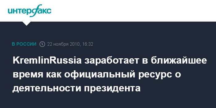 KremlinRussia заработает в ближайшее время как официальный ресурс о деятельности президента