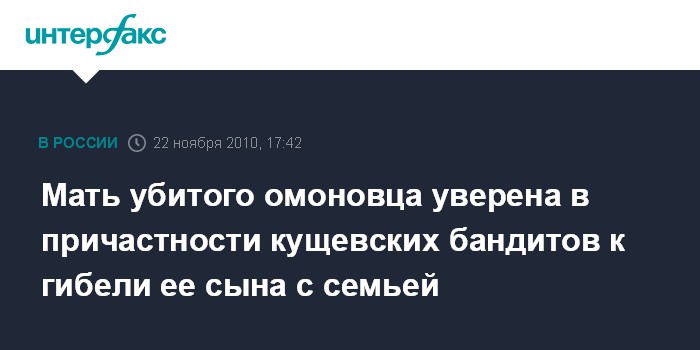 Мать убитого омоновца уверена в причастности кущевских бандитов к гибели ее сына с семьей