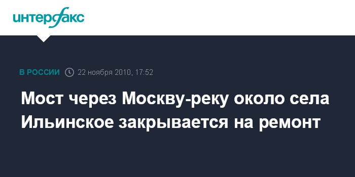 Москва. 22 ноября. INTERFAX.RU - В связи с проведением ремонтных работ с понедельника закрывается автомобильное движение по мосту через Москву-реку в районе села Ильинское, сообщила "Интерфаксу" начальник отдела пропаганды безопасности дорожного движения УГИБДД ГУВД по Москве Марина Васильева.