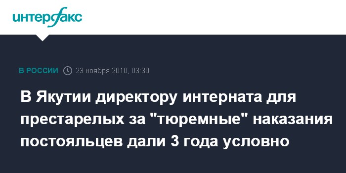В Якутии директору интерната для престарелых за "тюремные" наказания постояльцев дали 3 года условно