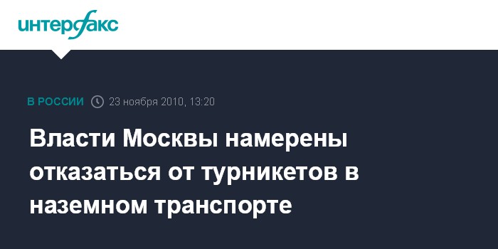 Москва. 23 ноября. INTERFAX.RU - В будущем году из московских троллейбусов, автобусов и трамваев планируется убрать все турникеты, заявил и.о. руководителя департамента транспорта и связи столицы Василий Кичеджи интернет-газете "Маркер".