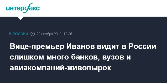 Вице-премьер Иванов видит в России слишком много банков, вузов и авиакомпаний-живопырок