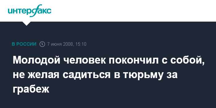 Молодой человек покончил с собой, не желая садиться в тюрьму за грабеж