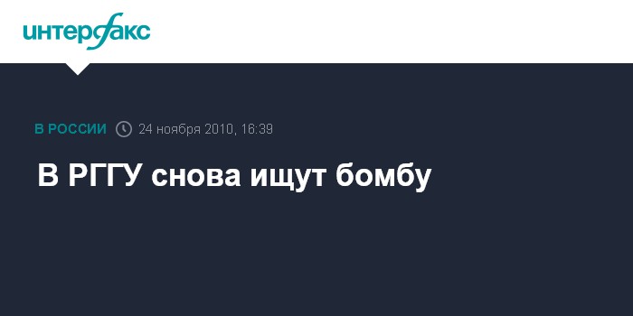 Москва. 24 ноября. INTERFAX.RU - Очередное сообщение о якобы заложенной бомбе в здании Российского государственного гуманитарного университета (РГГУ) поступило в среду, сообщил "Интерфаксу" источник в правоохранительных органах.
