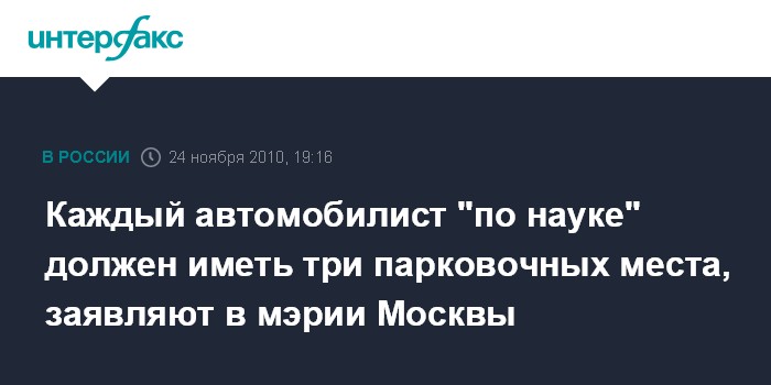 Каждый автомобилист "по науке" должен иметь три парковочных места, заявляют в мэрии Москвы