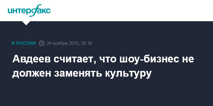 Авдеев считает, что шоу-бизнес не должен заменять культуру