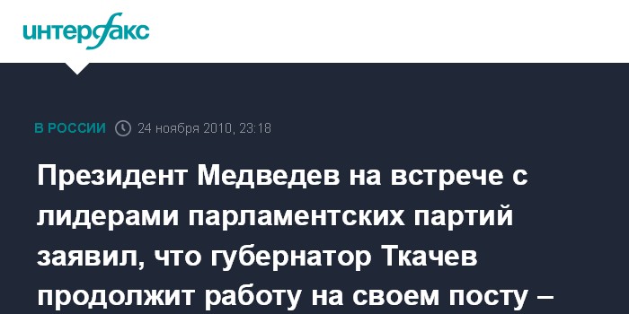 Президент Медведев на встрече с лидерами парламентских партий заявил, что губернатор Ткачев продолжит работу на своем посту – Сурков