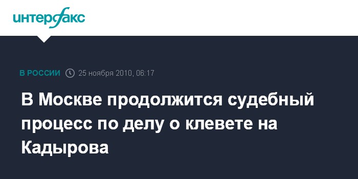В Москве продолжится судебный процесс по делу о клевете на Кадырова