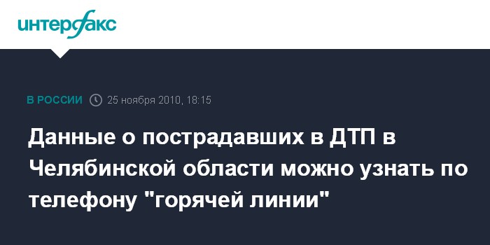 Челябинск. 25 ноября. INTERFAX.RU - Главное управление МЧС России по Челябинской области открыло телефон "горячей линии", по которому можно узнать информацию о погибших и пострадавших в результате ДТП с рейсовым автобусом, направлявшимся в Троицк.