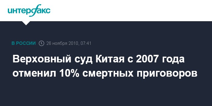 Верховный суд Китая с 2007 года отменил 10% смертных приговоров