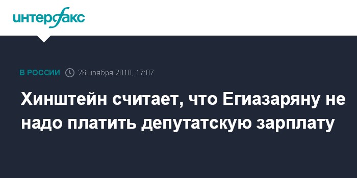 Хинштейн считает, что Егиазаряну не надо платить депутатскую зарплату