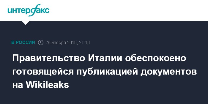 Рим. 26 ноября. INTERFAX.RU - Власти Италии опасаются, что планируемая публикация около 3 млн секретных документов на сайте Wikileaks может повредить, среди прочего, и итальянским интересам, сообщают в пятницу римские СМИ.