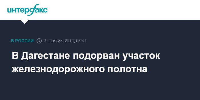 "Подорваны около трех метров железнодорожного полотна, а также повреждены несколько железобетонных шпал. Движение поездов на данном участке пути остановлено. В настоящее время прервано движение пассажирского поезда "Москва-Махачкала", а также грузового состава", - сказал собеседник агентства.