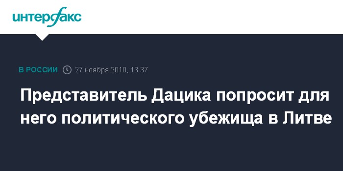 Москва. 27 ноября. INTERFAX.RU - Националисты намерены просить у Литвы политическое убежище для своего соратника Вячеслава Дацика, сбежавшего из российской психбольницы и находящегося теперь в норвежской тюрьме. Как рассказал "Интерфаксу" в субботу лидер запрещенной в России судом националистической организации "Славянский Союз" Дмитрий Демушкин, он намерен обратиться в литовское посольство как официальный представитель В.Дацика.