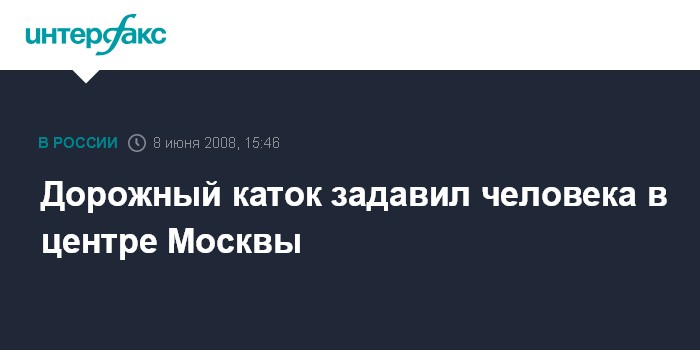 Москва. 8 июня. ИНТЕРФАКС - В центре Москвы под дорожный каток попал человек, сообщил в воскресенье "Интерфаксу" источник в правоохранительных органах.