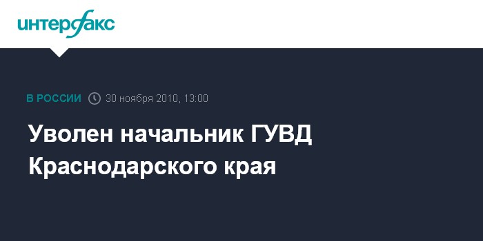Москва. 30 ноября. INTERFAX.RU - Президент России Дмитрий Медведев отправил в отставку начальника ГУВД Краснодарского края.