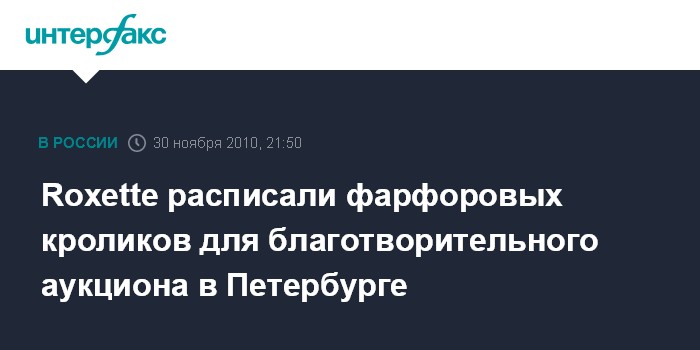 Санкт-Петербург. 30 ноября. INTERFAX.RU - Четвертый новогодний благотворительный аукцион, на котором распродадут расписанные российскими и зарубежными знаменитостями фигурки фарфоровых кроликов, пройдет в Петербурге в четверг.