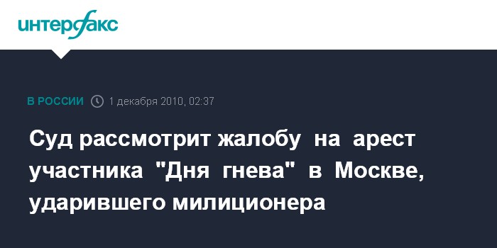 Суд рассмотрит жалобу на арест участника "Дня гнева" в Москве, ударившего милиционера