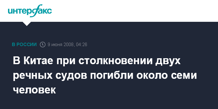 Пекин. 9 июня. ИНТЕРФАКС-КИТАЙ - В результате столкновения
