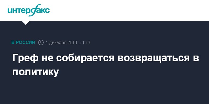 Москва. 1 декабря. INTERFAX.RU - Президент - председатель правления Сбербанка РФ, бывший министр экономического развития и торговли РФ Герман Греф не собирается возвращаться в политику.