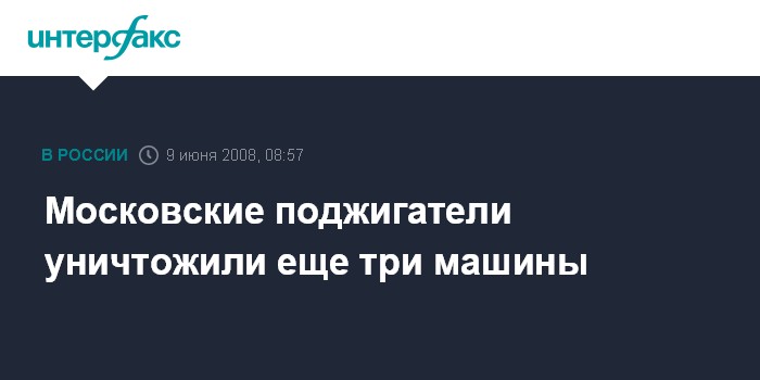 Москва. 9 июня. INTERFAX.RU - В Москве вчера вечером и минувшей ночью было сожжено еще три автомобиля, сообщил "Интерфаксу" источник в правоохранительных органах.