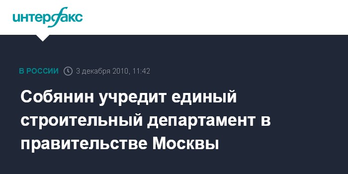 Собянин учредит единый строительный департамент в правительстве Москвы
