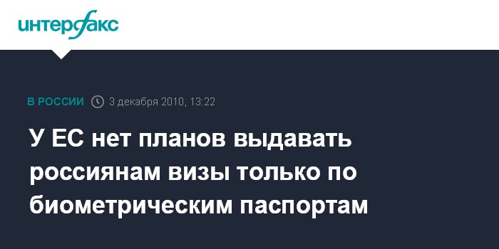 Москва. 3 декабря. INTERFAX.RU - Представительство Евросоюза в РФ опровергло заявление о том, что скоро только обладатели биометрических паспортов в России смогут получать Шенгенскую визу.