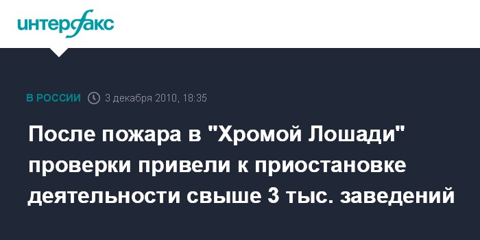После пожара в "Хромой Лошади" проверки привели к приостановке деятельности свыше 3 тыс. заведений