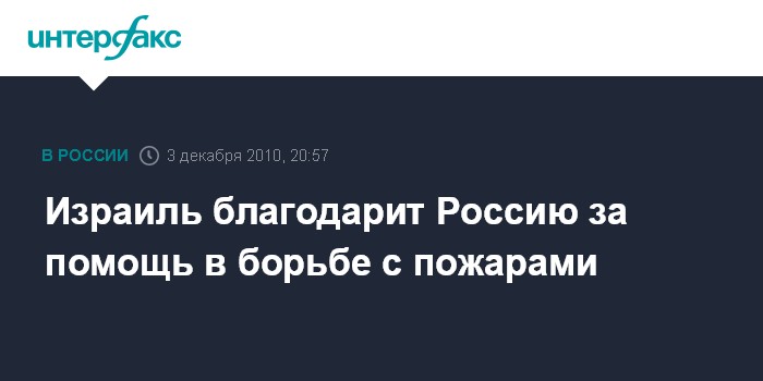 Израиль благодарит Россию за помощь в борьбе с пожарами