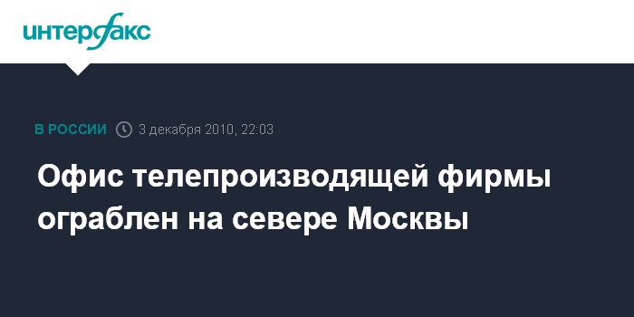 Офис телепроизводящей фирмы ограблен на севере Москвы