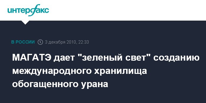 МАГАТЭ дает "зеленый свет" созданию международного хранилища обогащенного урана