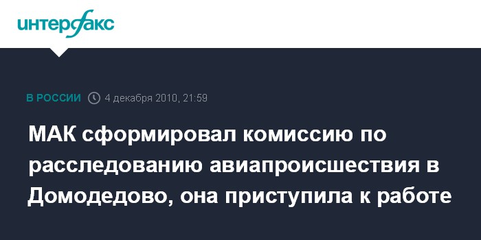 МАК сформировал комиссию по расследованию авиапроисшествия в Домодедово, она приступила к работе