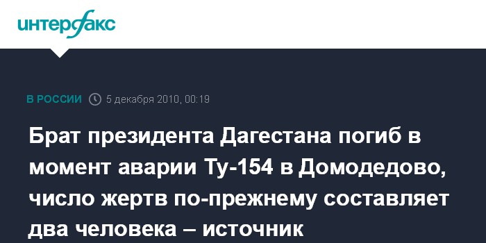 Брат президента Дагестана погиб в момент аварии Ту-154 в Домодедово, число жертв по-прежнему составляет два человека – источник