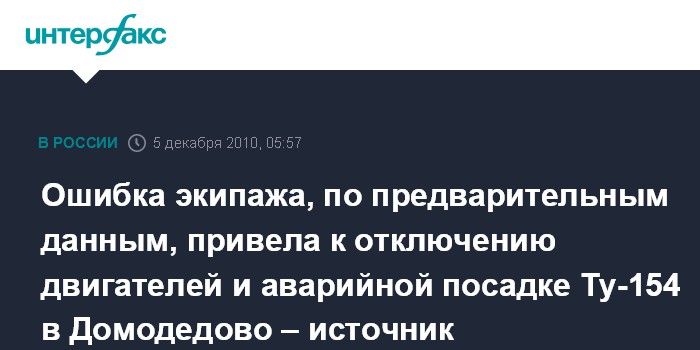 Ошибка экипажа, по предварительным данным, привела к отключению двигателей и аварийной посадке Ту-154 в Домодедово – источник