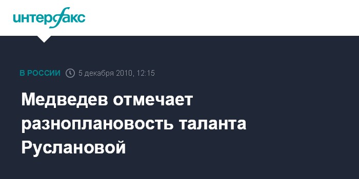 Москва. 5 декабря. INTERFAX.RU - Президент России Дмитрий Медведев поздравил народную артистку РФ, актрису Московского драматического театра им. Рубена Симонова Нину Русланову с днем рождения, сообщает в воскресенье пресс-служба главы государства.